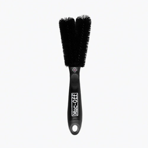 The Muc-Off Two-Prong Brush is ideal for reaching hard-to-shift dirt on spokes, discs, shocks, cranks, linkages and pedals. The unique design features an impact-resistant, dual-density handle for maximum grip in wet conditions and durable nylon bristles. The twin brush heads can be easily altered and repositioned to reach even the tightest areas. An essential for all workshops.