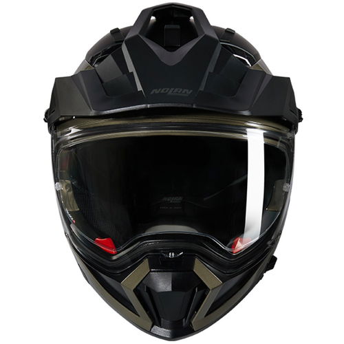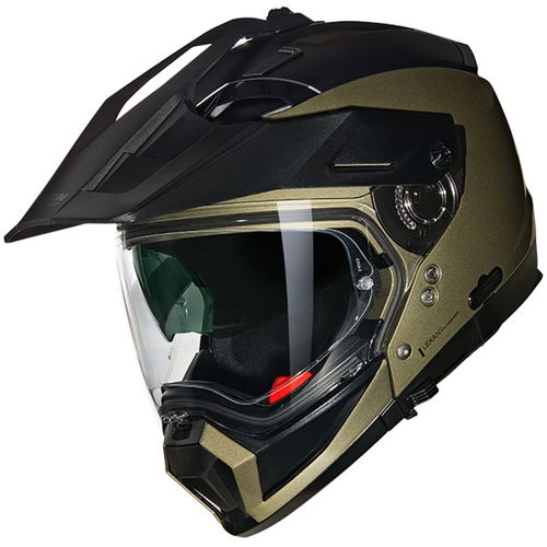 The Nolan N70-2X 06 Classico Nobile motorcycle helmet is a top-of-the-range road and off-road crossover, the first on/off-road helmet fitted with a removable protective chin guard on the market. The design may take inspiration from off-road helmets, but this is very much an on-road helmet with the features it offers. This is highly compact thanks to two outer shell sizes and has dual P/J homologation to make you feel safe in any position you wear. This has an ultrawide visor with a particularly wide window compatible with goggles use (even with the visor fitted and open), VPS sunscreen (adjustable to various positions and fitted with the automatic repositioning system), Nolan's AirBooster Technology upper ventilation system, double lever Microlock2 retention system with micrometric regulation, innovative Clima Comfort inner padding (with micro-perforated fabric and adjustable neck-roll) and this is set up for the N-Com communication system (M951 R series, B902L R series, B902 R series, B602 R series, B101 R series, ESS III). The ultra-wide and deep visor is made from Lexan, scratch-resistant and coated, and the sun-visor is protective against UV 400. The interior is removable and washable to keep you fresh. The N70-2 X also comes with a wind protector and an adjustable peak in the box - which has six possible configurations. ECE 22.06 certified and made in Italy.