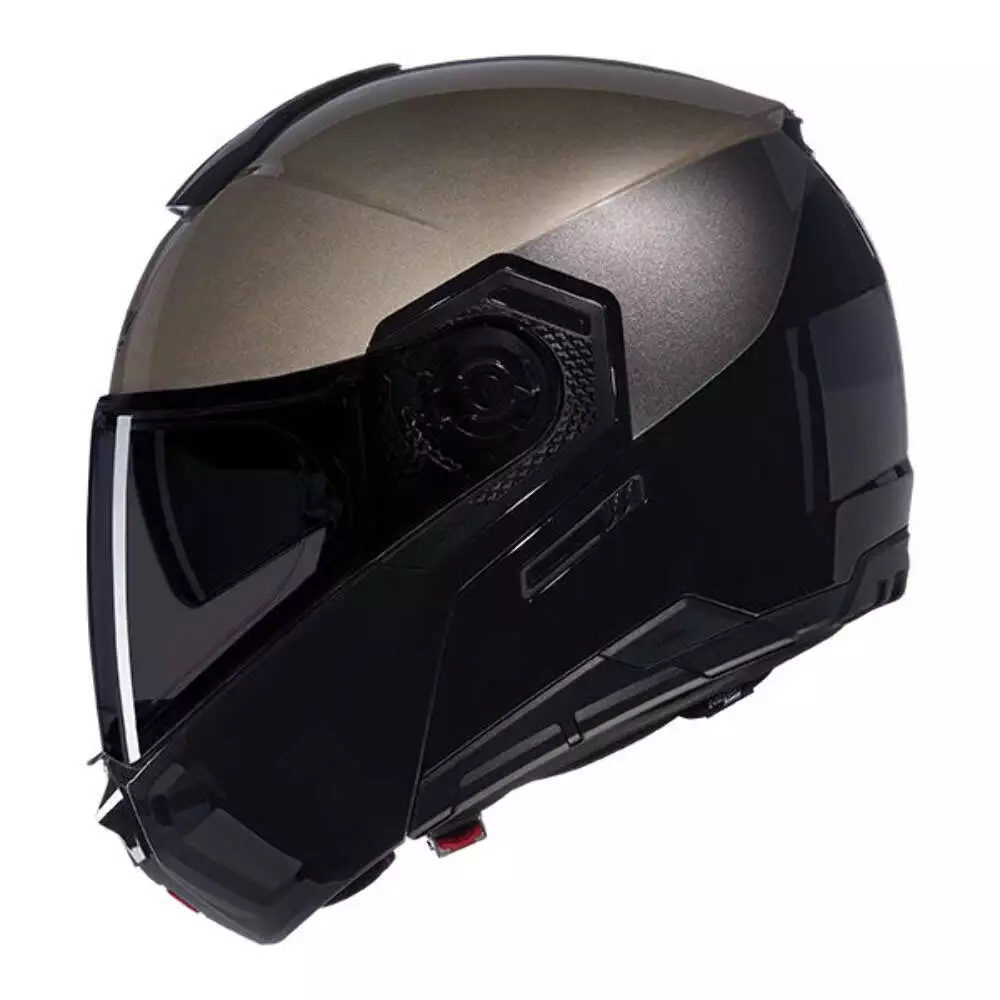 The Nolan N90-3 Vern Speciale flip-front motorcycle helmet offers dual P/J homologation, meaning it can be worn safely while moving thanks to the dual-action chin guard opening system. It also boasts ECE 22.06 certification and is constructed from ultra-lightweight and durable Lexan polycarbonate. The ultrawide visor provides optimal visibility and is scratch-resistant, treated and Pinlock-ready. The dual action system allows for a secure one-handed chin guard opening. The Airbooster technology ensures maximum freshness, and you can stay connected wherever you go with compatibility for N-Com systems. The Nolan N90-3 also offers Nolan's Adjustable Vision Protection System (VPS) sunscreen with UV protection up to 400nm and a wind protector. The “Clima Comfort” inner lining offers exceptional comfort, and the chin straps are integrated into the liner. The MicroLock 2 closure is adjustable and ultra-secure. The Speciale edition refers to the unique technique born from the skilled hands of Nolan's craftsmen in the Bergamo headquarters, where all production still takes place today. It is a procedure that involves combining paintwork with decals through unique masking. Available in a choice of colours and designs.