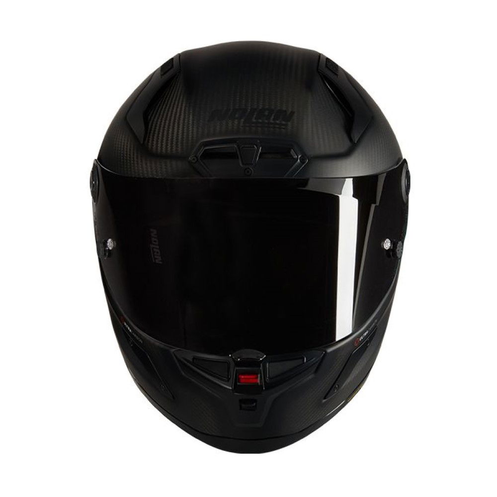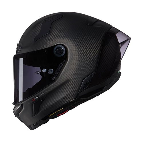 The Nolan X-804 RS Puro 325 Ultra Carbon is made from carbon fibre with Nolan's RAS – Racetrack Aerodynamic Spoiler that is removable and the RAF – Racing Air Flow system for superior airflow and comfort. It is 100% made in Italy and offers ECE 22-06 certifications and an ultra-wide aperture for exceptional vision. The aperture also provides an increased top and lateral visibility and is scratch-resistant. It boasts Nolan's SVLS Safety Visor Lock System and a Pinlock fog-resistant inner visor. Inside the X-804 is a “Carbon Fitting Racing Experience” inner comfort padding with LAF – Liner Adjustable Fitting and advanced NERS – Nolan Emergency Release System. 3D-shaped cheek pads provide improved wearability with removable padding and moulded lining for the inner cheek pads. The inner lining is also an adaptive eyewear for use with glasses. The Double D ring closure is ultra-secure and adjustable. It also comes with a "track only" visor in the box, a wind protector, and a breath deflector. The X-804 is also compatible with Nolan's Camel Bag hydration system (sold seperately) and Nolan's additional linings. It also benefits from a lower rear edge profile optimised for improving neck mobility, especially in the racing position. The Nolan X-804 RS Ultra Carbon helmet is supplied with a clear, dark smoke visor and clear Pinlock insert as standard.