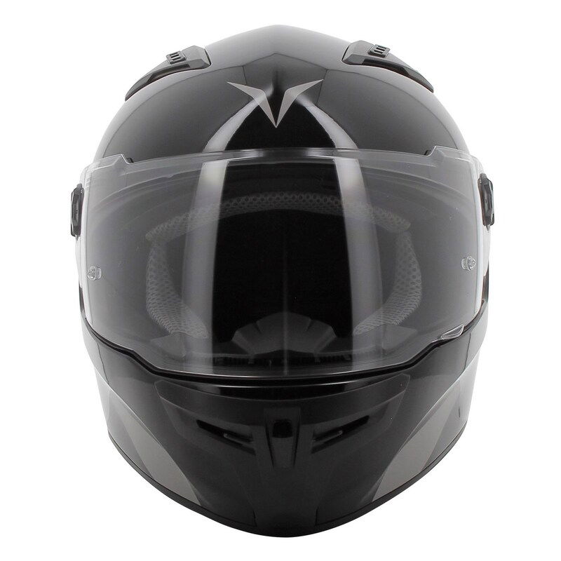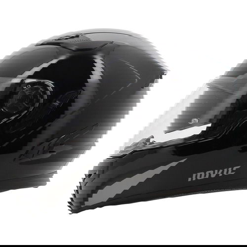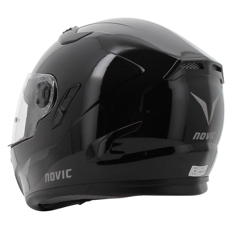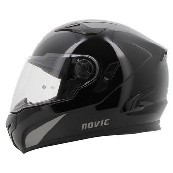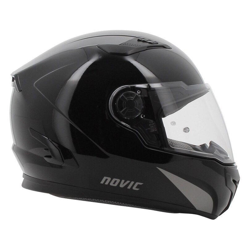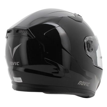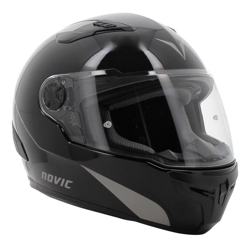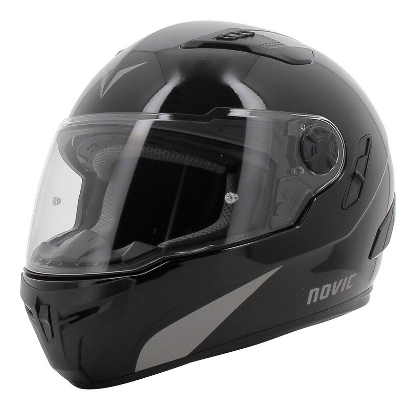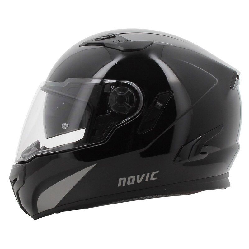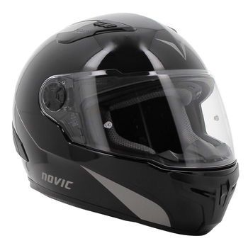 The Novic Rever full-face motorcycle helmet in plain gloss black offers a robust ABS construction in two shell sizes for superior aerodynamics. The ergonomic design and strategically placed ventilation channels guarantee excellent airflow, keeping you cool and focused on the road ahead. The removable and washable plush interior lining, crafted from premium materials, provides superior comfort and is anti-bacterial. The Rever helmet also boasts an intuitive spring-loaded visor system, allowing for quick and hassle-free adjustments. The optically correct visor provides clear vision, reducing eye strain and enhancing overall visibility on the road. The integrated drop-down sun visor offers added convenience, ensuring optimal visibility in bright conditions. It is Pinlock ready with a Pinlock 30 insert in the box. The closure is an ultra-secure and adjustable micrometric chin strap, and it also comes with a removable chin and nose guard. ECE 22.05 certified. Available in a choice of colours.