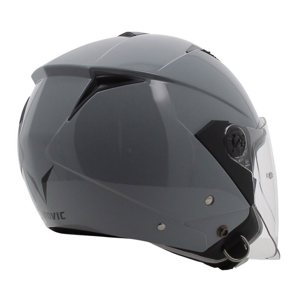 The Novic Skidd jet helmet features a lightweight and compact design, allowing for effortless manoeuvrability on crowded city streets. Its aerodynamic shape minimises wind resistance, ensuring a smooth and comfortable ride. Crafted from a high-quality ABS shell, the Skidd helmet offers durability and reliability, making it ideal for daily commutes and weekend getaways. A shock-absorbing EPS liner enhances energy dispersion in the event of an accident. The helmet meets stringent safety standards, giving you the confidence to ride with peace of mind. The removable and washable plush antibacterial interior lining, made from premium materials, offers a snug and comfortable fit. The helmet’s ventilation system promotes optimal airflow, keeping you cool and sweat-free even during warm rides with two air intakes. The clear, scratch-resistant visor provides crystal-clear vision, shielding your eyes from debris and wind. The visor is easily adjustable and spring-loaded for easy installation. It is Pinlock ready, and the Skidd also comes with a drop-down inner sun visor for protection from sun glares. The micrometric chin strap gives a secure and adjustable closure, and it has two shell sizes for enhanced aerodynamics and comfort. It is also certified by ECE 22.05.
