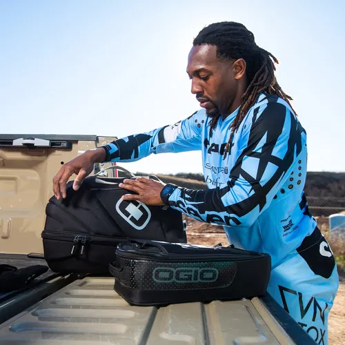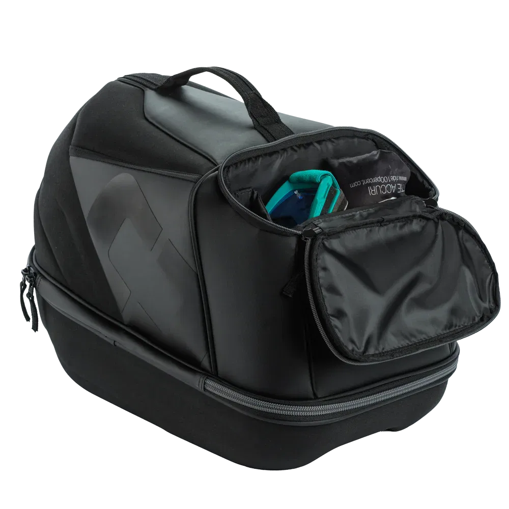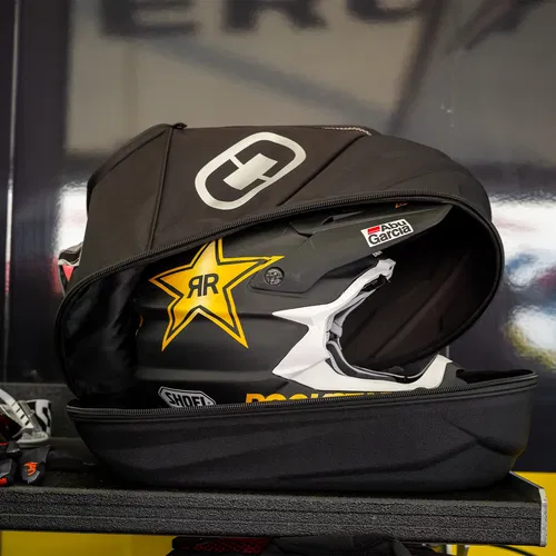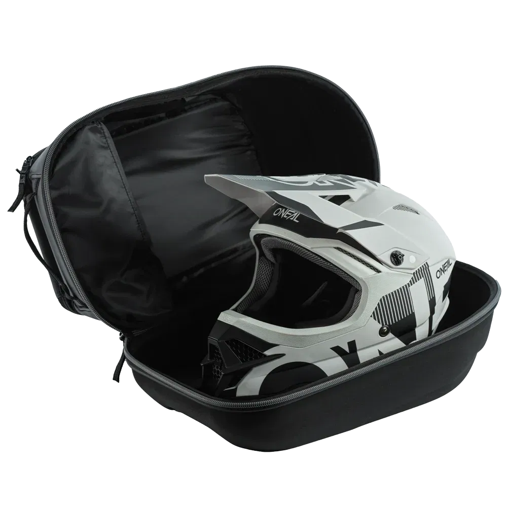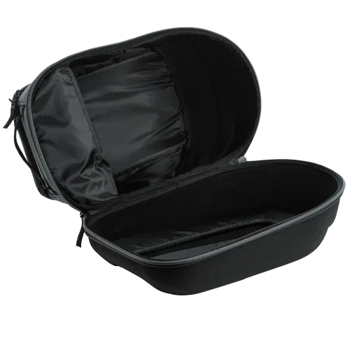The Ogio ATS Helmet/Gear Case provides a safe and organised place to store your motorcycle helmet, neck brace, goggles, and other essentials. Measuring 16.76 inches x 11.25 inches x 13.50 inches, this is made from an ultra-strong yet lightweight 900D fabric with PVC backing with a moulded EVA PE protective shell. The adjustable padding thickness accommodates multiple helmet and neck brace types, and the compressed foam holds the helmet and neck brace still within the case. The adjustable goggle/visor storage holds up to four goggles OR three goggles and action camera equipment for versatility and convenience.
