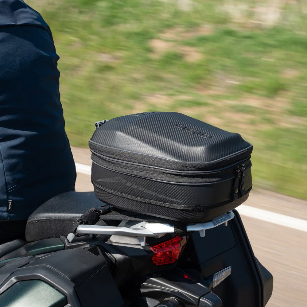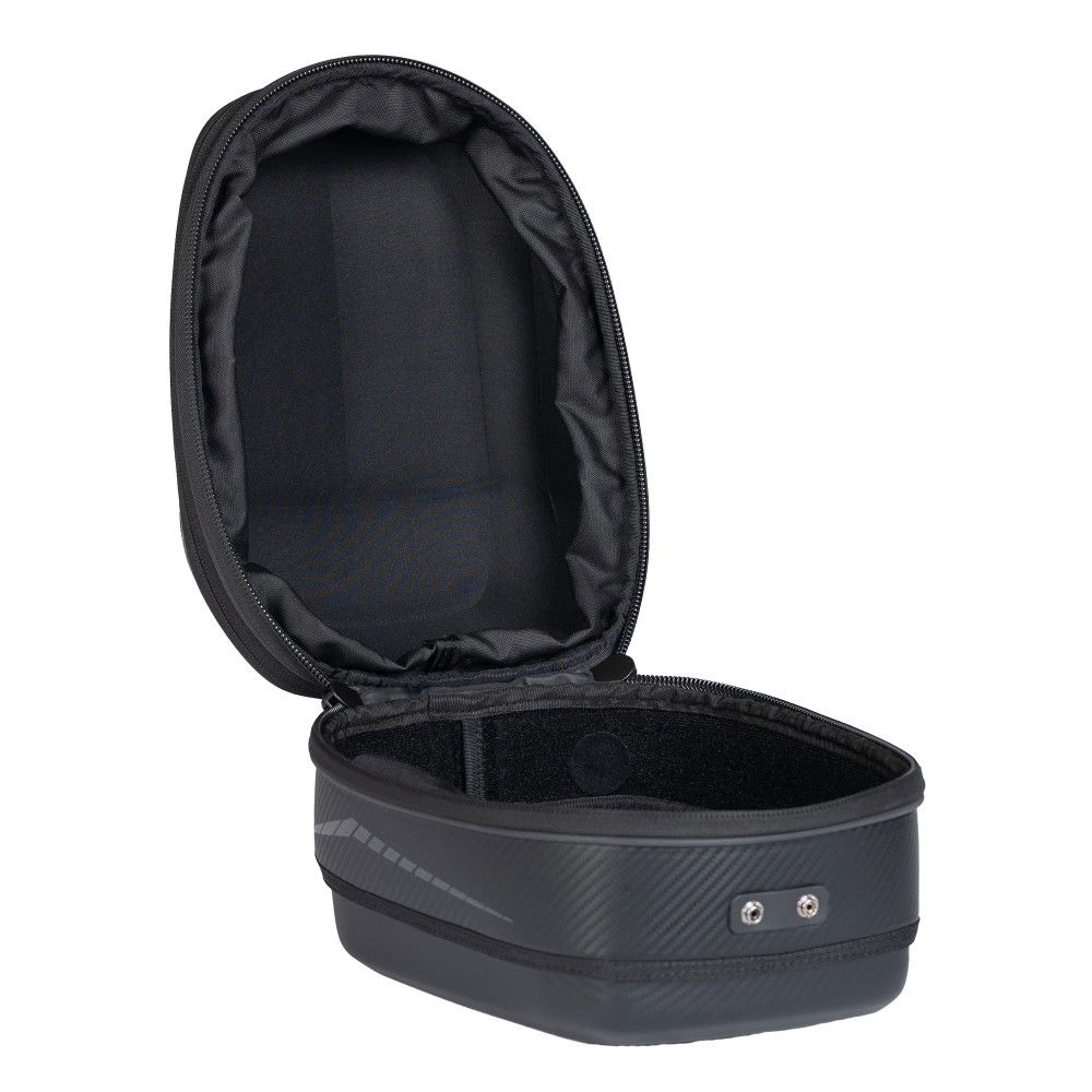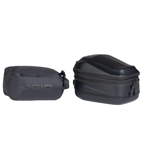 The RAM EZY-Mount partnership with OGIO created a patent-pending system that makes installation easy, use easy, and removal easy when the ride is over. The Ogio TB1 is a 14L Tail Bag with a 3-inch expansion joint that allows the bag to expand and store up to 18L of volume. The moulded EVA with Carbon Fibre PU film provides structure and support while providing water resistance from the elements. The unique design features a low-profile profile, providing an internal storage pocket, a waterproof rolltop liner, and a convenient carry strap. A quick-release pull strap provides fast removal, while reflective piping and side graphics enhance visibility in low-light conditions. A removable Velcro-backed storage pouch gives added convenience. It also comes with a rain cover with a shock cord for a tight fit. Expanded this measures: 29.2 L x 22 W x 29.2 H cm.