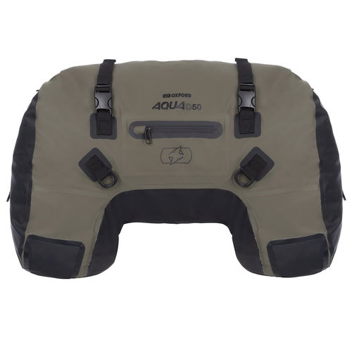 The Oxford Products AQUA D-50 duffle bag hugs the bike, maximising storage and stabilising contact points with the bike, and, unlike traditional panniers, can't 'sag' in the absence of side panels. Made from ultra-durable PVC tarpaulin, it is wipe-clean and waterproof with welded seams. It has a waterproof roll-top closure and adjustable compression straps for maximum stability. It has a capacity of 50 litres and is a universal fit for almost all motorcycles. Heat-resistant pannier panels give added protection. It offers a unique attachment system for motorcycles with under seat security strap, and D-rings allow the bag to be securely attached to the motorcycle. The Aqua D-50 duffle bag also has a water-resistant zipped external rear pocket and measures: Width: 60cm, Height: 40cm, Depth: 30cm.