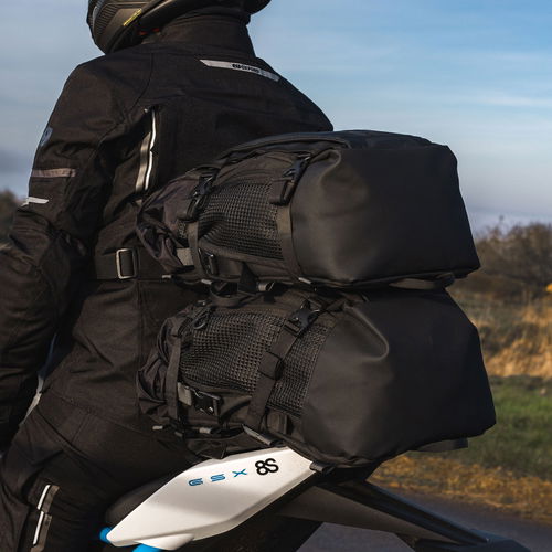 A highly versatile bag that doubles as a tail pack as part of Oxford Products Atlas modular luggage system with a lifetime guarantee from the manufacturer. Made from ultra-durable 420D, PU-backed polyester Ripstop and 1000D PU-backed polyester with 1mm Hypalon underneath for additional durability, the Atlas T-30 Advanced Tourpack is ultra-heavy-duty. It features Duraflex buckles, tri-glide adjustment sliders, and aluminium alloy G-hooks. YKK AQUAGUARD zips with glove-friendly pullers, giving secure closure and easy access with a 3-point adjustable roll-top opening. A detachable shoulder strap and grab handles at the top, bottom and sides give ease of transportation. A quick-access side pocket and PU-coated mesh side pocket for the drying kit are handy additions. It comes with a 100% waterproof main compartment detachable lining, contrast lining to improve internal visibility and a quick-access top pocket. Comes with: 4 x Connector G-Hook Loop, 2 x Central Connection Straps, 2 x Left G-Hook Connection Straps, 2 x Right G-Hook Connection Straps, 1 x Security Strap, 1 x Shoulder Strap, 1 x Dry Liner and user information and fitting instructions. 20 litre capacity.