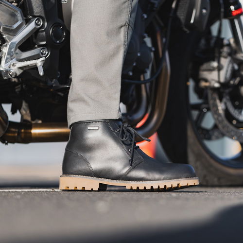 The Oxford Products CE-approved (EN 13634) Chukka boot is a stylish and comfortable waterproof boot for urban riding. It doesn't look like your normal motorcycle boot - it features a classic, stylish smart look and looks great on and off the bike. It features hidden protection ankle protectors, PU reinforced toe and heel counters, and a PU footbed shank. A breathable and waterproof internal membrane keeps your feet dry in all weather. Made from premium leather, the Chukka boots also offer a rubber sole with superior all-terrain tread and a lace closure system for a variable and secure fit.