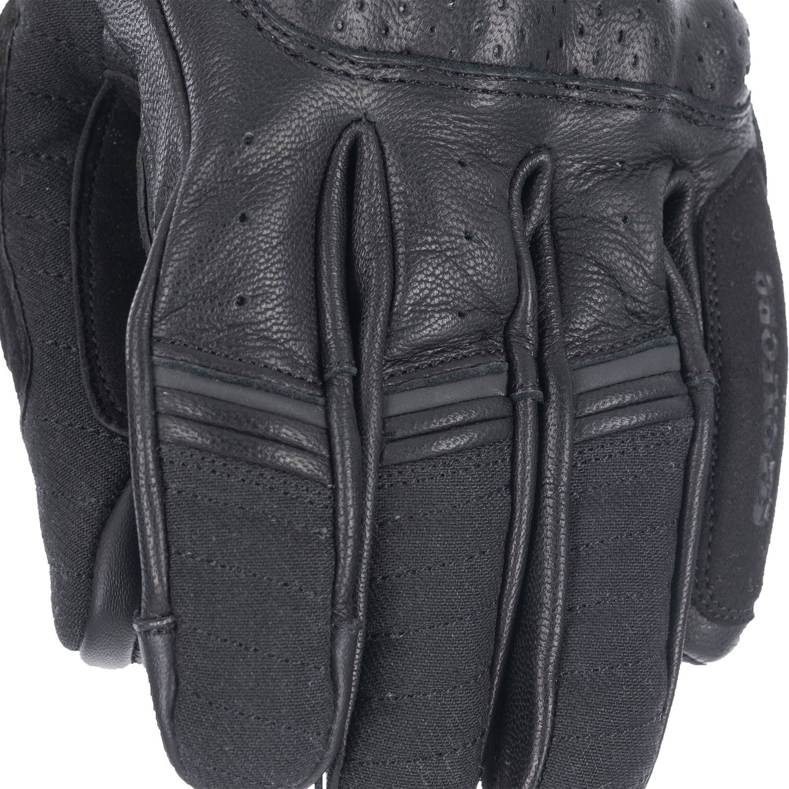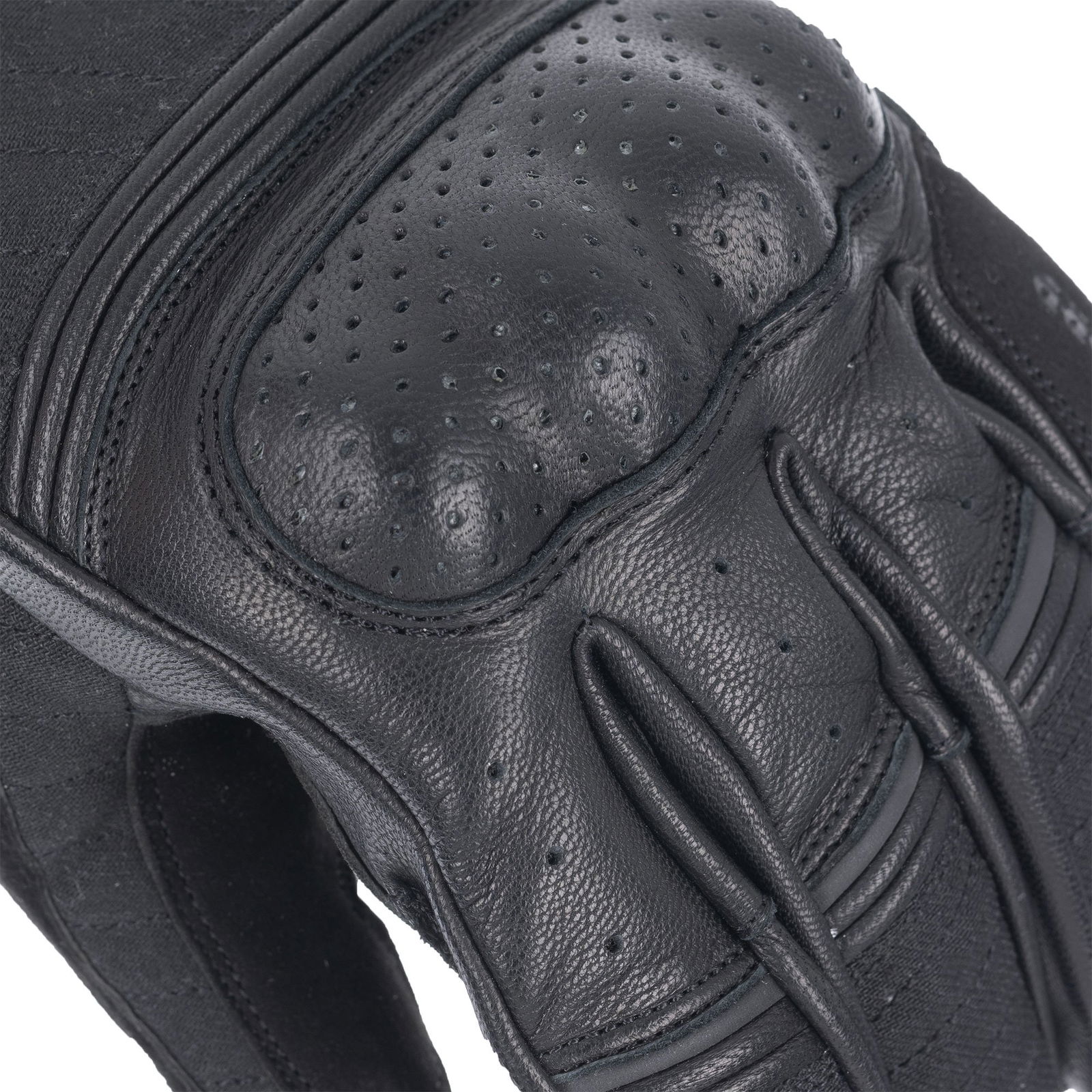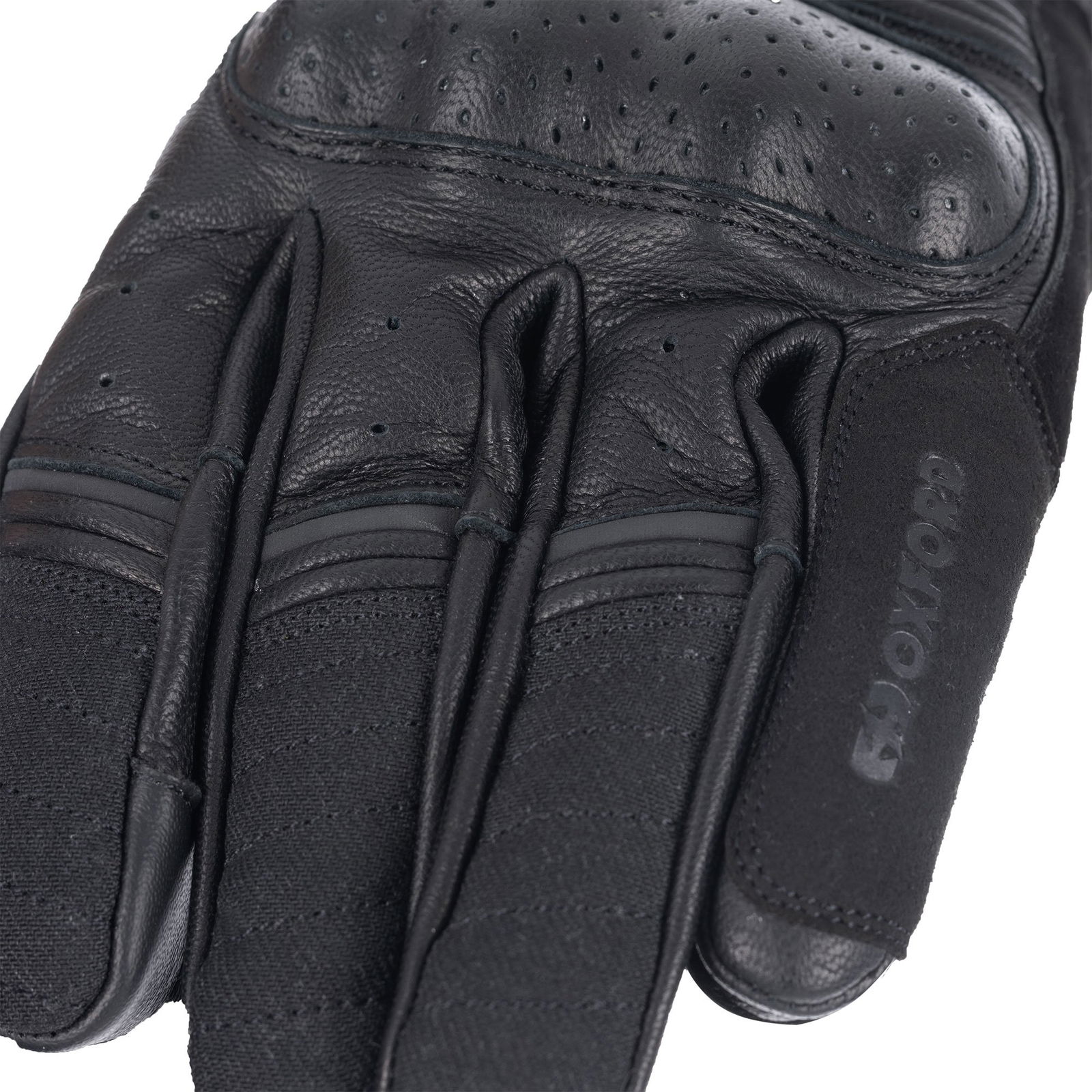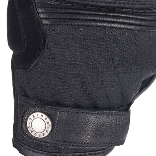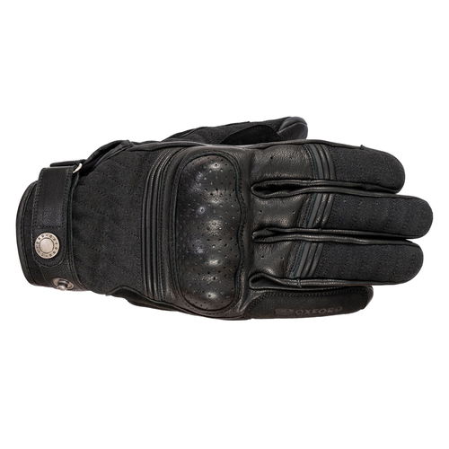 The Oxford Products Hardy gloves combine classic styling with modern protection. Combining leather and textile with heat-stamped leather PU knuckles gives a great fit without compromising performance. CE Level 1 KP certified (EN13594:2015), the Oxford Hardy gloves boast leather-covered, foam-padded PU knuckles with full-leather palms and fourchettes and textile cuff and finger backs with EVA padded Amara on the palms, thumbs and sides for superior impact and abrasion resistance. Perforation in key areas gives excellent airflow; a sweat-wicking comfort lining always keeps you comfortable. Touchscreen-compatible forefingers and thumbs allow use with phones and GPS devices, and the ergonomic pre-curved fingers prevent fatigue. Elasticated at the wrist with leather adjustment straps and snap fastening adjustment, it gives the perfect and secure fit.