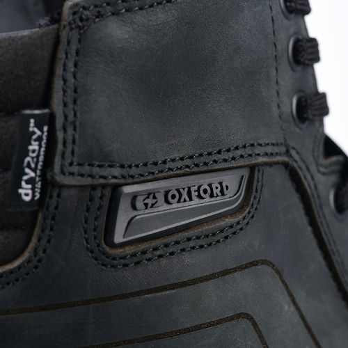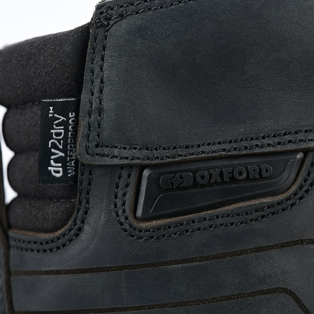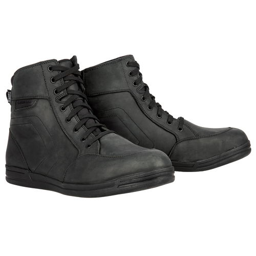 A casually styled boot that looks great on and off the bike, the Oxford Products Kickback boot is fully waterproof thanks to a breathable Dry2Dry membrane for all-weather riding. The Kickback boots are CE Approved EN 13634:2017 Height: Level 1, Abrasion resistance: Level 1, Impact cut: Level 2, Transverse rigidity: Level 1) and have padded tongues, padded suede ankle accordion detailing for comfort and protection with reinforced heels, shank reinforced soles and anti-twist mid soles for outstanding protection. The durable leather upper not only looks great but also gives excellent impact protection. Durable nylon laces allow for a custom fit, and a puller loop allows easy entry and exit. Anti-slip multi-density boot soles keep you sure-footed for excellent grip. Available in a choice of colours and in a ladies version.