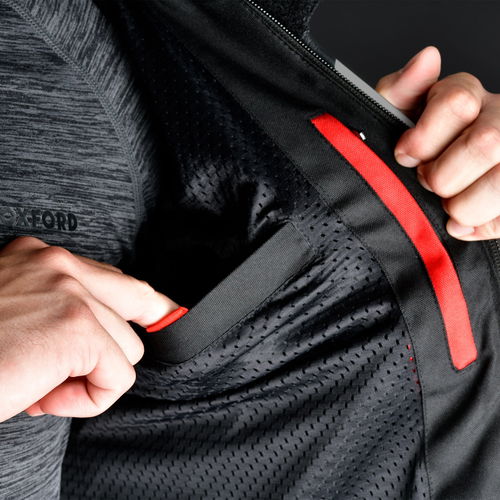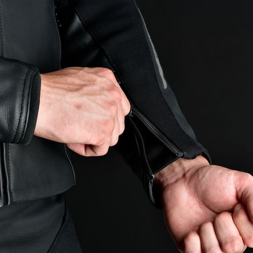The Oxford Products Nexus 1.0 leather motorcycle jacket is the culmination of 4 years of research and development and more than 40 years of experience since racers started tearing around tracks wearing Oxford-branded leathers. By continually assimilating insights and feedback from top-level racers during this time, Oxford Products has been able to engineer products that make life on bikes better. It boasts CE AAA-rated protection (CE AAA Certified (EN 17092-2:2020), with CE Level 2 protectors at the shoulders and elbows (EN 1621-1:2012) and external TPU shoulder and elbow sliders for impact and abrasion resistance. A YKK long and short connecting zips allow jacket attachment for a secure protective fastening. Made from 1.2mm genuine cowhide leather with additional leather reinforcements at key areas, the Nexus 1.0 also offers tear-resistant stretch textile in key areas with reinforced safety seams and air mesh collar lining for increased comfort and breathability. Perforated zones at the body and upper arms give added airflow along with breathable mesh lining for superior comfort. D-ring adjustment tabs at the waist with grip detail give a custom fit, while accordion leather stretch panels at the upper back and above the elbow offer improved flexibility with large stretch panels at the shoulders, inner arm and waist, giving improved fit and movement on the bike. YKK semi-auto lock zips at the sleeve openings are a handy addition, along with stretch internal mesh lining and wind-resistant zip guards at the cuff openings and main zip. The main central zip is concealed to prevent tank scratching. 100% leather zip pulls ensure ease of use whilst wearing gloves. It has two zipped side pockets, an inner Napoleon pocket and two inner pockets.