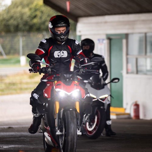 The Oxford Products Nexus 1.0 leather motorcycle suit is the culmination of 4 years of research and development and more than 40 years of experience since racers started tearing around tracks wearing Oxford-branded leathers. By continually assimilating insights and feedback from top-level racers during this time, Oxford Products has been able to engineer products that make life on bikes better. It boasts CE AAA-rated protection (CE AAA Certified (EN 17092-2:2020), with CE Level 2 protectors at the shoulders, elbows, hips and knees (EN 1621-1:2012) and external TPU shoulder, elbow and replaceable knee sliders (with hook and loop) for impact and abrasion resistance. It also offers a pocket for a back protector (sold separately). Made from 1.2mm genuine cowhide leather with additional leather reinforcements at key areas, the Nexus 1.0 also offers tear-resistant stretch textile in key areas with reinforced safety seams and air mesh collar lining for increased comfort and breathability. Perforated zones give added airflow along with a fully removable breathable mesh lining for superior comfort. Accordion leather stretch panels at the upper back, above the knees and waist offer improved flexibility, with large stretch panels at the shoulders, inner arm, crotch, inner knee/calf and waist, giving improved fit and movement on the bike. YKK semi-auto lock zips at the sleeve and leg openings are a handy addition, along with stretch internal mesh lining and wind-resistant zip guards at the cuff openings and main zip. The main central zip is concealed to prevent tank scratching. 100% leather zip pulls ensure ease of use whilst wearing gloves. It has two inner pockets, reinforced safety seams, pre-curved legs for an improved riding experience and 360-degree reflective inserts at the chest, shoulders and back. A race hump provides improved aerodynamics and airflow, and coccyx padding on the seat provides outstanding impact protection. Matching items are also available.
