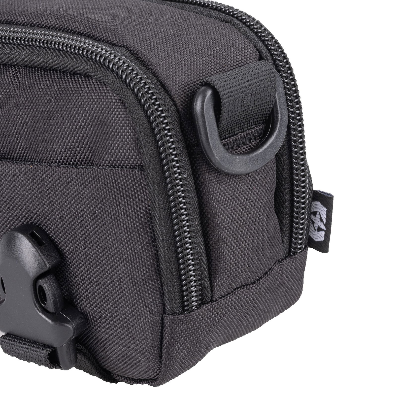 Part of the Oxford Products Nomad range, the Nomad 2L Utility Pouch is made from durable and waterproof 600D polyester with a 2-litre capacity. The MOLLE-compatible (Modular Lightweight Load-carrying Equipment) system and PALS (Pouch Ladder Attachment System) webbing combine to make a user-friendly webbing grid for accessory straps to be woven through, creating a tight, secure fit. This allows you to add or take away luggage items to make this system work for you. The 2L utility pouch has two zipped pockets and two easy-access front pouches and converts to a waist bag and cross-body bag.