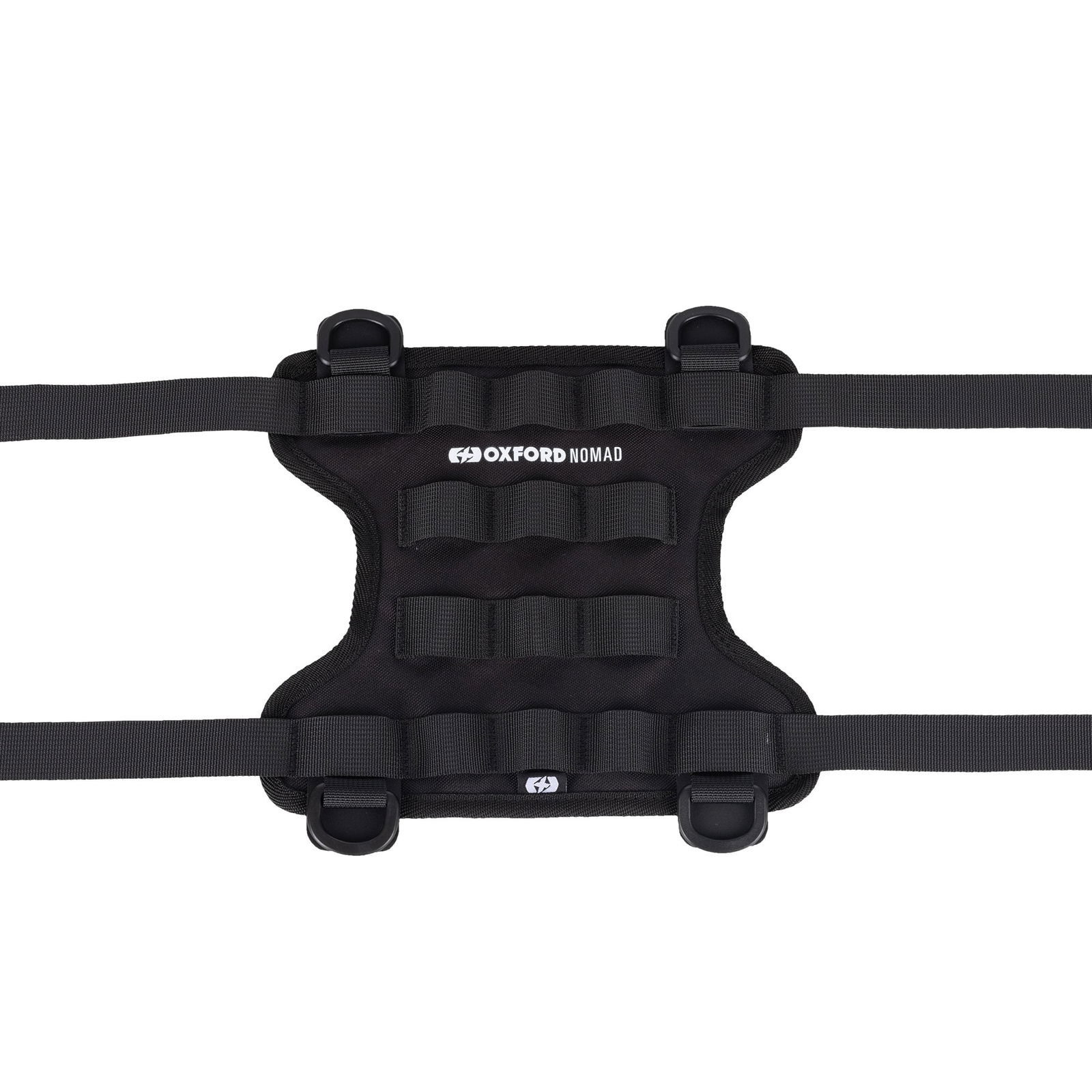 The Oxford Products Nomad Accessory Harness allows the fixation of the Oxford Products Nomad range to your bike. It is MOLLE-compatible (Modular Lightweight Load-carrying Equipment). It has PALS (Pouch Ladder Attachment System) webbing to make a user-friendly webbing grid for accessory straps to be woven through, creating a tight, secure fit. Made from durable, weatherproof 600D polyester, it has Hypalon protection tabs with D-ring attachment points. The adjustable straps fit directly to the motorcycle and luggage.