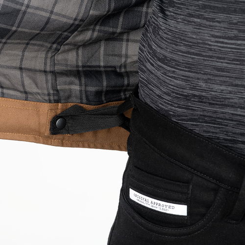 The Oxford Products Original Approved Heist jacket is CE-rated to AAA (EN 17092-2:2020) and made from Oxford's tried and tested 13.5oz Armourlite stretch cotton twill and coated with a durable water repellent finish. CE Level 2 Dynamic shoulder and elbow protectors (EN 1621-1:2012) give enhanced impact resistance plus a pocket for a back protector (sold separately) with belt attachment loops to give a secure fastening to jeans. A stylish check lining gives comfortable wear, while hidden structure stitching and bar tack stitching at street points give added reinforcement and durability. The Heist jacket offers a smart-casual styling that looks great on and off the bike. A YKK zip centre closure with press studs and YKK zip expansion and press studs at the cuffs give secure closure. Two chest pockets, two zipped side pockets, and an internal pocket give convenient storage.