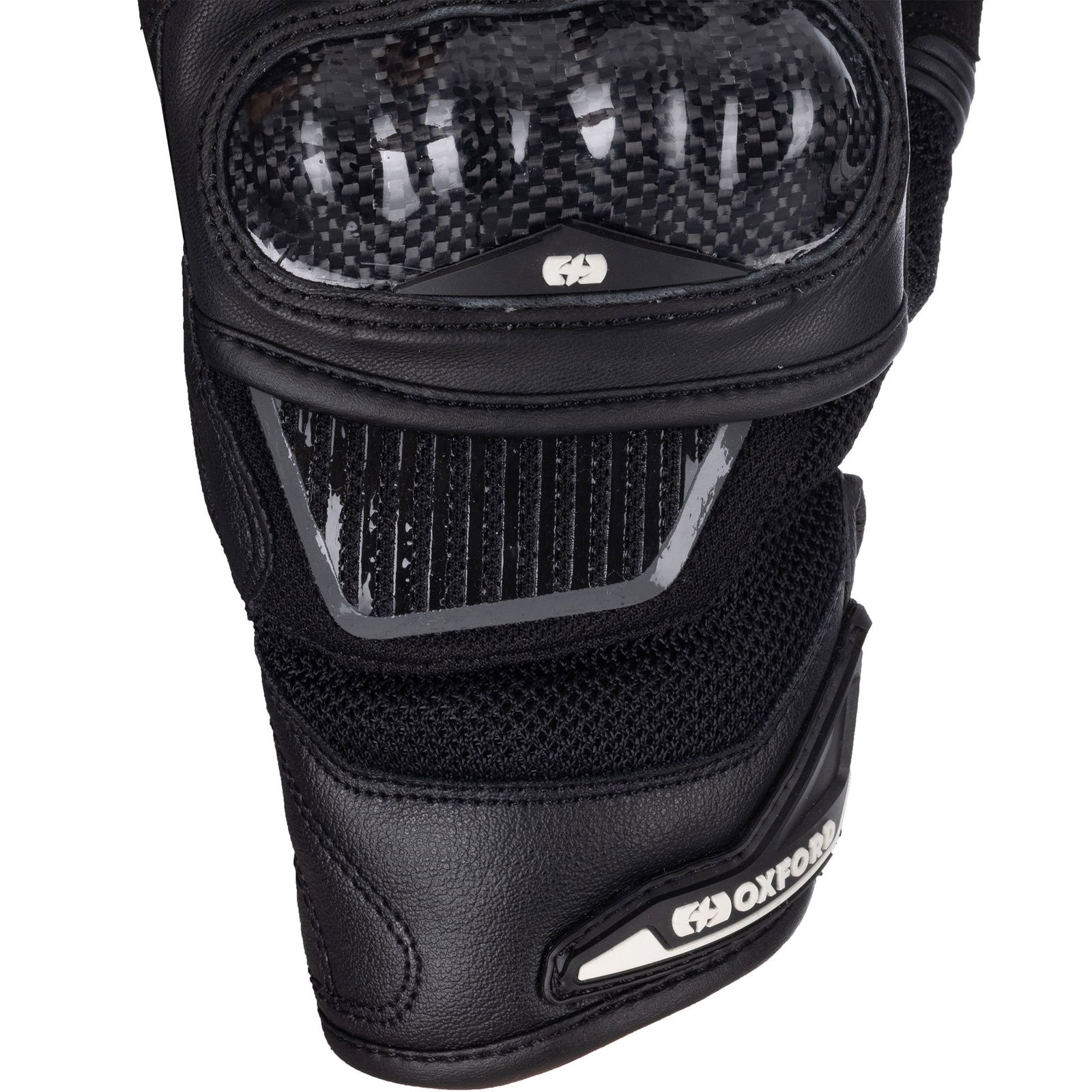 The Oxford Products RP-4S glove is a summer sports riding glove with a short cuff and high ventilation. CE Level 1 KP Certified (EN13594:2015), it offers Oxford PU knuckle impact protection, a full leather palm with Amara reinforced palm, thumb, and side impact zone, leather finger reinforcement with PE foam impact padding, and PU Leather cuff reinforcement with PE foam impact padding. Made from 100% premium aniline leather, the RP-4S gloves also offer perforated finger fourchettes for superior ventilation with a sweat-wicking comfort lining at the back of the hand for enhanced comfort. Twin wrist and cuff adjustment straps give a secure and custom fit with elasticated wrists for outstanding freedom of movement and accordion stretch panelling at the fingers and back of the hand. Ergonomic pre-curved fingers prevent rider fatigue, and touchscreen-compatible forefingers and thumbs are a handy addition for use with phones and GPS devices.