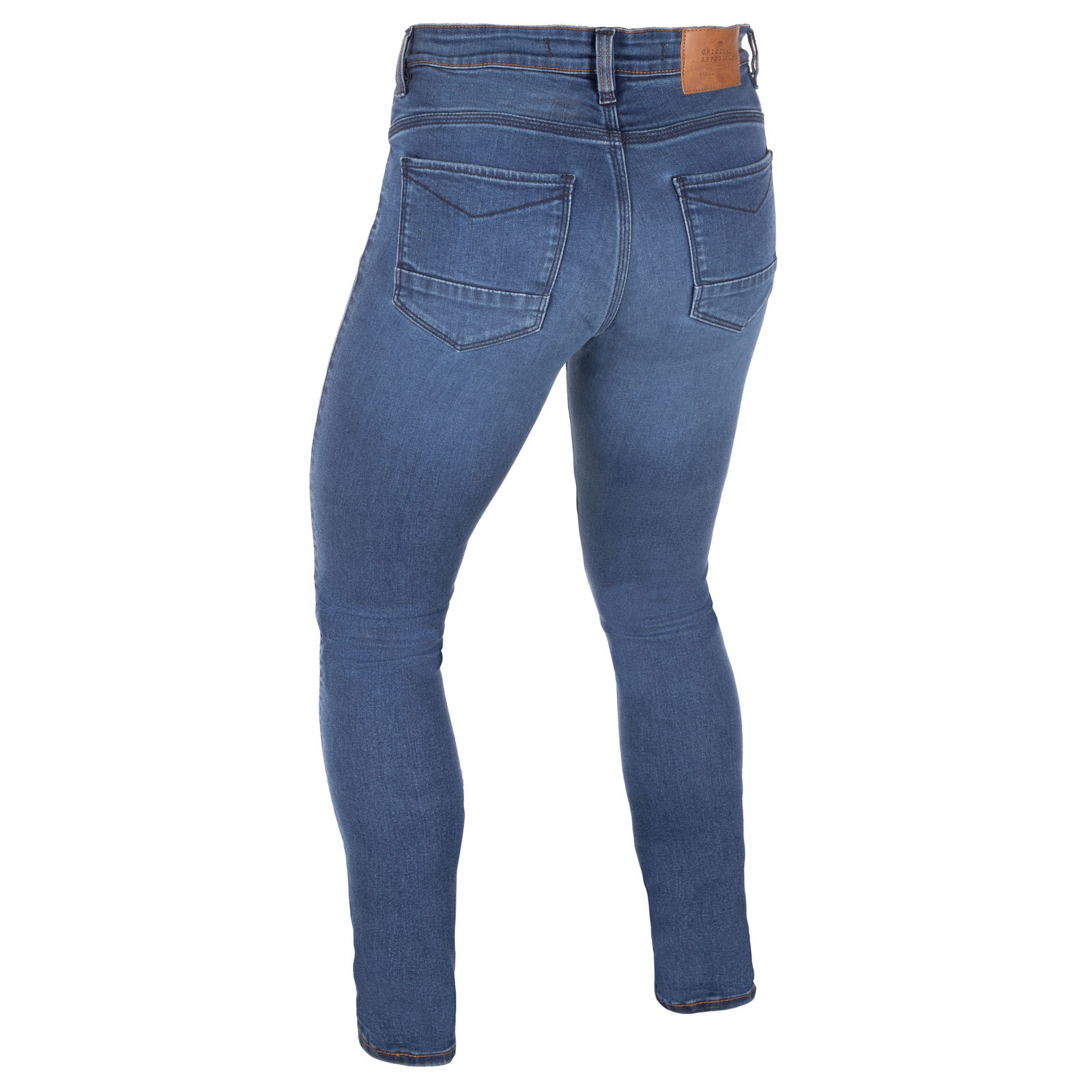 CE AA Certified (EN 17092-3:2020) with CE Level 2 Dynamic knee and hip protectors (EN 1621-1:2012), the Oxford Products Sofia AA Straight leg women's jeans feature reinforced impact abrasion zones and internal overlock stitching that reinforces all critical seams for improved seam strength. These are made from single-layer Armourlite stretch denim with eco-friendly laser wash detailing and feature a naturally breathable and moisture-wicking cotton outer. Rivet reinforced side pockets and twin needle reinforced side seams give added durability. A YKK fly gives secure closure, and triple-stitched fell seams provide additional protection. Bar tack reinforced belt loops and jersey protector pockets for increased comfort are handy additions. These offer a straight fit with a high rise and fully adjustable knee protector positioning for safety. The curved back yoke seam for push-up effect and knee darts give shape. A double waistband belt loop detail fits multiple belt widths securely. These also offer two front pockets, a front coin pocket and two rear patch pockets in the classic five-pocket design, looking great on and off the bike. Available in a choice of colours.