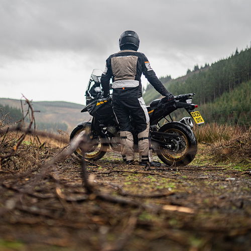 The best for wet weather, the Oxford Stormland D2D motorcycle jacket features a Dry2Dry Trilaminate construction with a 10,000mm waterproof rating and 10,000g/m2/24hrs breathability rating. It is CE AA Certified with Level 2 CE shoulder and elbow protectors and a back protector pocket. SuperFabric reinforcement at the shoulders gives improved abrasion resistance and 360-degree reflective printing for night visibility. YKK long and short connection zips allow attachment to trousers for a secure protective fastening. The durable high-tenacity nylon outer shell gives an exceptional strength-to-weight ratio, while Ripstop Nylon fabric in vulnerable areas gives additional impact resistance. Bar tack stitching reinforces stress points, and Neoprene rolled collar edges give comfort against the skin. A removable waterproof neck gaiter in the stretch trilaminate fabric gives the perfect waterproof and windproof seal between your helmet and microfleece backing for superior next-to-skin comfort. Under and over-centre opening packets give increased water resistance. Dual cuff construction with wrist gaiter creates a water and windproof seal between gloves and jacket. The Stormland D2D is fantastic in wet weather but also offers versatility and excellence in all weather. It comes with a WarmDry removable thermal liner with Polartec Power Grid stretch thermal zones and has six direct ventilation zones for optimum airflow. Two large chest vents, two zipped vents at the upper arm and two vertical zips on the back - all zips are water-resistant. The large foldback chest vents can be magnetically fastened open with one hand for enhanced comfort and ease of use. Accordion stretch panels give exceptional freedom of movement and adjustability with a drawcord at the hem, five-point press stud collar and tri-glide webbing adjustment at the upper arm and waist to give the perfect personalised fit and a longer rear hemline to prevent wind ingress in the riding position. A plethora of pockets ( two front box pockets, a rear box pocket, a rear mesh pocket for drying wet gloves, two side pockets, an internal waterproof Napoleon pocket and an internal elasticated mesh pocket) give ample storage and a Recco reflector on the right upper arm makes you searchable in the event you need rescuing. The Stormland D2D jacket has it all! Matching items also available.