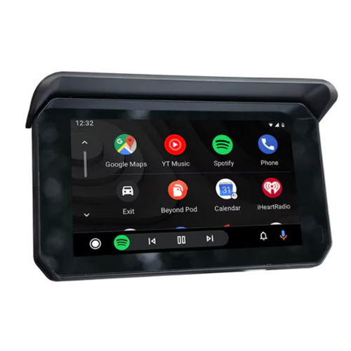 The Pama Plug "N" Go Ridecast is a motorcycle GPS touchscreen display that connects directly to your mobile device with full intercom headset compatibility. It can be hardwired onto a motorcycle or powered via the Type C socket. It has an IPX7 waterproof sunscreen, a detachable anti-theft design, and an anti-glare HD screen visible in any light. The bracket kit and screw design make it easy to mount on any motorcycle, and it comes with a built-in microphone and speaker. It automatically connects after the initial pairing, which is ultra-useful and compatible with 98% of motorcycles. It connects using Dual Bluetooth 5.0, which supports listening to music, satnav, and calls with a Bluetooth helmet or headset. It is designed to operate within a 12V to 24V DC voltage range.