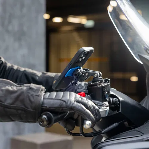 The Quad Lock Brake Reservoir Mount is the ultimate smartphone mount for motorcycles, and it is compatible with all Quad Lock Cases, including the Quad Lock Universal Adaptor. It secures your phone on maxi scooters, scooters, and motorcycles with square brake fluid reservoirs. Quad Lock's patented dual-stage locking ensures attachment. The tilt-adjustable index head and multi-pivot arm give optimal viewing and blend seamlessly with your scooter or motorcycle's aesthetics. Made from ultra-tough glass-filled nylon, the Brake Reservoir Mount boasts stainless steel pivot pins, threaded inserts with a powder-coated steel bracket, and high-tensile steel fasteners with micro-encapsulated thread locket. It has a mount hole pitch range from 38mm - 70mm (1 1/2" - 2 3/4") and multi-pivot arm adjustment and head tilt adjustment and lateral adjustment when mounted on small brake reservoir lids. In the box: 1 x Quad Lock Brake Reservoir Mount, 2 x M4 x 16 CSK screws, 2 x M4 x 18 CSK screws and 1 x combination 3mm/4mm hex (Allen) key