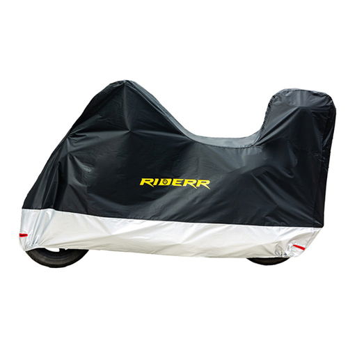 The Riderr Top Box Motorcycle Cover is made from ultra-durable 210D Oxford Fabric that is UV-resistant with double stitching for burst resistance with extra space for your top box. It shields your bike from dust, rain, and UV rays while ensuring a secure and snug fit. It is black and reflective silver for maximising visibility and comes in a zipped bag to store easily when not in use. Use the cover indoors or out with your chain lock, thread through the front or back lock holes for extra protection. It is strong and lightweight with an elasticated base and adjustable belly strap. Available in a choice of sizes. Size M measures 229 x 99 x 125cm.