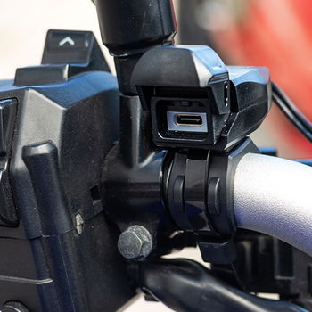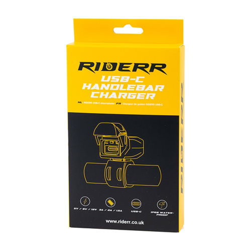 The Riderr USB-C Handlebar Charger lets you power your devices on the go! It delivers consistent, reliable power with multiple voltage and current options to suit your needs. Whether you're charging your phone, GPS, or any USB-powered device, the RIDERR USB-C Handlebar Charger is the perfect companion. It offers IP66 waterproof certification and has a cable with a length of 170cm. It is CE approved and offers 5V, 9V and 12V as well as 3A, 2A and 1.5A.