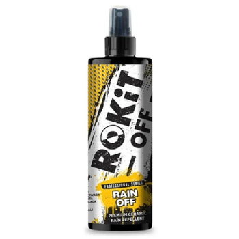 Rokit Rain Off ceramic visor and goggle rain repellent uses hydrophobic water-beading technology to rapidly disperse water droplets, enhancing visibility in rainy conditions. The ceramic surface allows the droplets to just roll away. Safe for use on all goggles, visors and motorcycle windscreens.