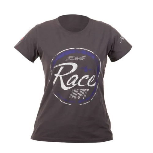 The RST Race Dept ladies t-shirt features a flattering design with short sleeves, a crew neck, and a soft-to-the-touch brushed cotton polyester construction. RST printed design on the front. Available in a choice of colours.
