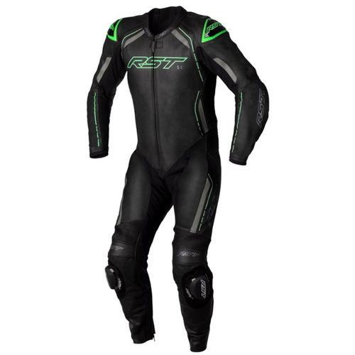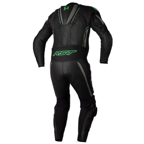 RST S1 CE Mens Leather Suit Black Grey Neon Green