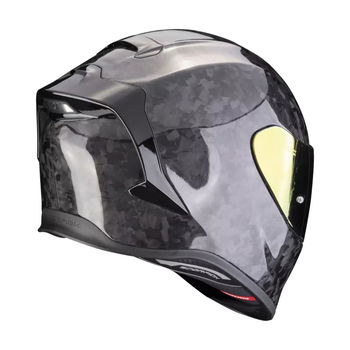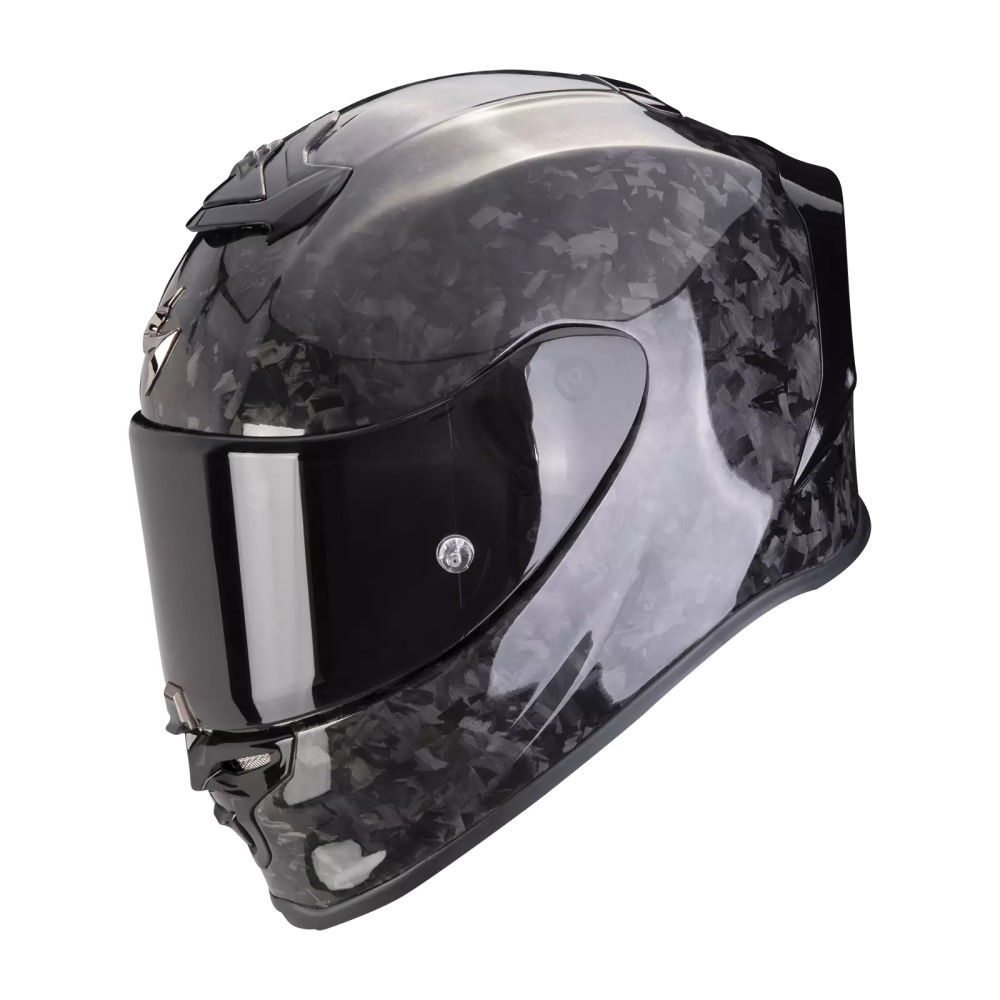 The Scorpion Exo R1 Evo Carbon helmet offers an ultra-lightweight carbon fibre shell of 1280g (+/- 50g). This shell is designed to crumple on impact to absorb the energy generated by the impact while retaining a strong structure. The hypoallergenic KiwkWick3 liner is removable and washable to keep your head fresh, and this also offers Airfit cheek pads that are air adjustable and reduce noise reduction, giving you the perfect personalised fit. The Exo R1 air has a five-year manufacturer's warranty to provide added confidence and a fully adjustable ventilation system for optimum air circulation. The Maxvision visor is Pinlock ready to reduce fogging, with a breath-deflector and chin cover for noise reduction. The New Ellip-Tec II face shield system is an extraordinarily robust ratchet mechanism that provides improved elliptical movement for added airtightness between the visor and eye port for a faster, smoother, and quieter riding experience. The double D titanium ring closure system provides a secure closure. ECE 22.06 approval. Comes with both a clear and smoke visor.