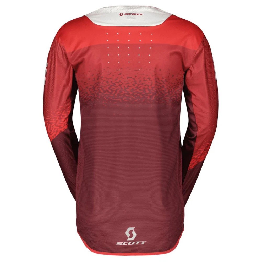 The Scott Podium Pro MX jersey is designed with an athletic fit and whole stretch fabric, providing a modern feel and optimal freedom of movement for motocross enthusiasts. Laser-cut ventilation holes, strategically placed mesh panels, and moisture-wicking materials work together to ensure riders stay cool and dry. Tape-bonded cuffs and a low-profile collar give superior comfort. The extended drop hem keeps this tucked in, and a rear neck mesh allows for outstanding airflow. Other colours are also available.