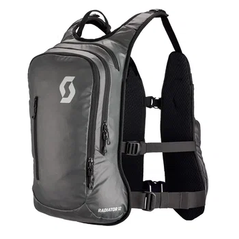 The Scott Radiator 12 backpack is the perfect piece of enduro and off-road gear. The tactical-oriented style features ample space in the main compartment, complemented by two spacious pockets integrated into the front straps for other essentials that you need to have quickly and easily accessible. With a separate hydration compartment and adjustable hose attachment points, this backpack is fully prepared to accommodate a hydration bladder. The strap system with wide adjustment options ensures a perfect fit, and the durable materials and construction guarantee that the Radiator 12 backpack will withstand even the most demanding conditions. It features bPURE Evo technology and is made from H400D × 400D with PU treatment. It has a separate compartment for a hydration bladder, adjustable hose attachment, six-point adjustment, spacious main compartment, a front tool pocket and a separate pocket for glasses. It has a 12-litre volume and measures 46 cm in height, 27 cm in width, and 14 cm in depth. Available in a choice of colours.