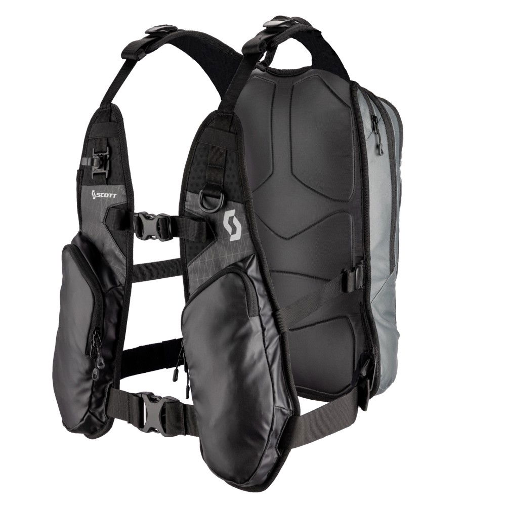 The Scott Radiator 12 backpack is the perfect piece of enduro and off-road gear. The tactical-oriented style features ample space in the main compartment, complemented by two spacious pockets integrated into the front straps for other essentials that you need to have quickly and easily accessible. With a separate hydration compartment and adjustable hose attachment points, this backpack is fully prepared to accommodate a hydration bladder. The strap system with wide adjustment options ensures a perfect fit, and the durable materials and construction guarantee that the Radiator 12 backpack will withstand even the most demanding conditions. It features bPURE Evo technology and is made from H400D × 400D with PU treatment. It has a separate compartment for a hydration bladder, adjustable hose attachment, six-point adjustment, spacious main compartment, a front tool pocket and a separate pocket for glasses. It has a 12-litre volume and measures 46 cm in height, 27 cm in width, and 14 cm in depth.