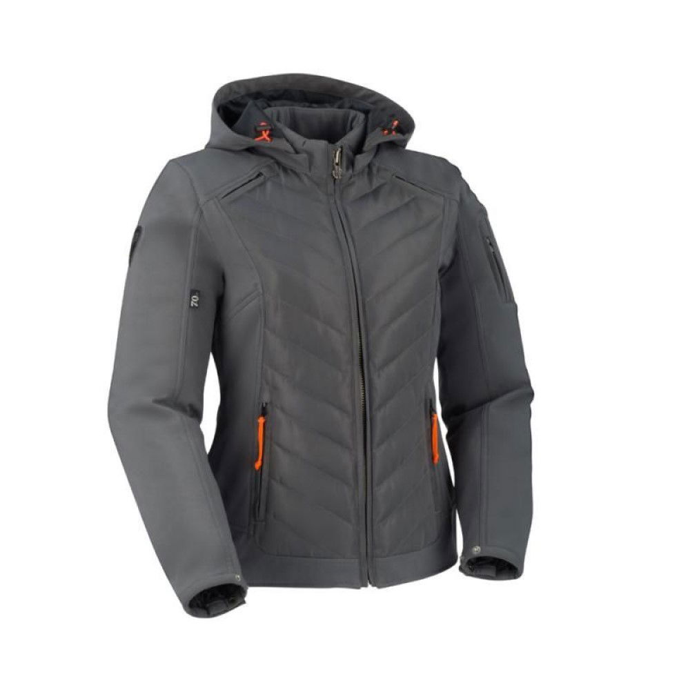 The Segura Natcho ladies' motorcycle jacket is CE-approved and features a 3-year manufacturer warranty. It is fully waterproof with a durable softshell Twiltex textile construction and a removable hood. A 90g fully removable thermo-alu lining keeps you warm in cooler conditions, and a fixed mesh liner keeps you fresh in warmer temperatures. Segura's CE-approved Alpha shoulder and elbows provide additional impact resistance, and it has a pocket for a back protector (sold seperately.) It also has waist adjustment, adjustable and zipped cuffs and two outer and two inner pockets.