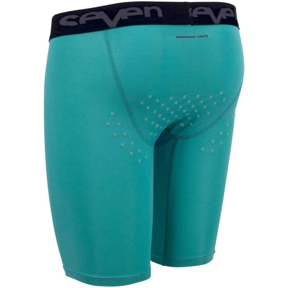 The Seven Zero Compression MX shorts offer an athletic compression fit that holds muscles tight to reduce unnecessary muscle movement or shaking that results in energy loss. Muscle compression also promotes blood and oxygen flow, which aids in quicker muscle recovery and allows muscles to work at a higher rate for longer periods of time. The Zero Compression shorts offer a moisture-wicking performance material construction that pulls moisture away from the body to keep you cool and dry. A silicone dot print at the back provides added grip on the inner pant liner.
