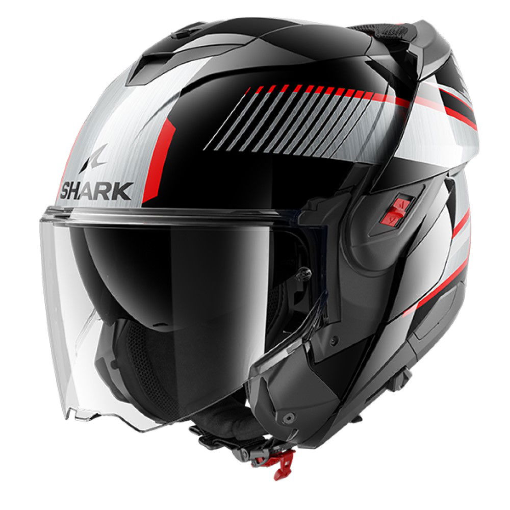 The Shark OXO Sikter modular motorcycle helmet boasts an ergonomic chin guard system that gives a smooth yet instant transition between jet and full-face mode with a simple hand movement. It is dual P/J homologated with ECE 22.06 certification. The Shark OXO is made from LEXANTM high-impact polycarbonate injection - a high-quality material that promises optimal mechanical properties. It offers abrasion and compression resistance and outstanding shock absorption thanks to multi-density EPS available in two shell sizes and six liner sizes; it guarantees optimal damping on each impact zone. The OXO offers a sophisticated ventilation system with two air inlets and two air vents for optimum air circulation. The airflow creates a controlled vortex for maximum comfort. The OXO reduces air resistance, providing unparalleled comfort and protection. The Shark OXO comes in a choice of colours and graphics.