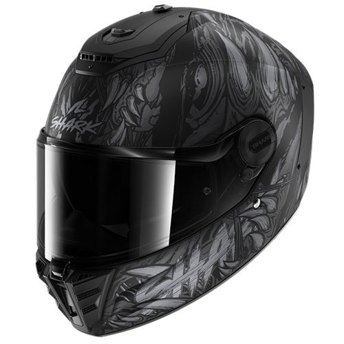 The Shark Spartan RS Shaytan full-face motorcycle helmet is made from a lightweight multi-axial composite shell with multi-density EPS to give the highest level of protection. It also benefits from two shell sizes for remarkable aerodynamics and comfort. The Spartan RS offers an ultra-resistant visor with four anchor point locking systems inspired by the Shark Race-R Pro GP for exceptional race-quality optical vision. It comes with a high-performance VZ 300 display with optical class 1. It also comes with a Pinlock 120 Max Vision insert and an internal sun visor that is UV380-treated. The Spartan RS features an entire ventilation system with two air inlets and two air extractors with an on/off switch for a personalised touch. The interior of the Shark Spartan RS is ALVEOTECH Sanitised, plus it is removable and washable. The 3D morpho cheeks give a great fit, plus there is a slot reserved for the Sharktooth intercom system, and Easyfit glasses grooves for glasses wearers. It also comes with a dual-use anti-fog breath guard and mask and is Sharktooth Prime compatible. The Shark Spartan RS motorcycle helmet is also available in other colours and other graphics - this is the Shaytan design in black and grey.