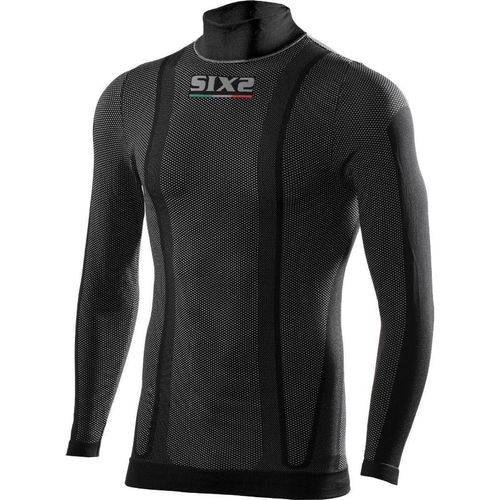 The Sixs Turtleneck Racing long-sleeve jersey maintains the correct body temperature and is suitable for all temperatures. It is designed to keep you comfortable at all times by wicking moisture and preventing foul odours and annoying irritations due to the build-up of sweat. The fabric carries water to the outside so it can evaporate. The skin is always dry, thermal insulation is constant, and it offers SPF 50 protection. An antistatic system prevents static. Fewer seams provide enhanced comfort, plus this is fully breathable for genuinely comfortable wear. Machine washable.