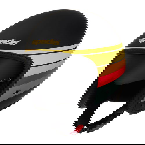 The Spada Ace Ranger open-face motorcycle helmet offers retro styling with a lightweight ABS shell. Although the Spada Ace is "visorless," it does provide a drop-down sun visor for sun glare. The removable inner is washable and has highly comfortable slim-profile cheek pads. The quick-release buckle provides a secure closure that is simple to use. A goggle loop at the rear is a handy addition when using goggles, and this is ECE 22.05 approved.