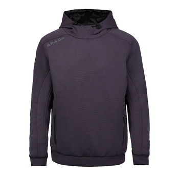 CE-certified level AA, the Spada Blade CE Hoodie boasts level 2 CE 5-piece armour for elbow, shoulder, and back protection. It is made from durable 4-way stretch rib polyester bonded with microfleece for a fluid sweatshirt-like feel. It features pullover styling, a zip-fastening kangaroo pocket, and a 2-piece hood construction to help the hood stay flat. Front set-in sleeves give a clean, sharp silhouette, and back raglan sleeves for longer reach and added flexibility. Ribbed cuffs and hem provide a comfortable fit, with concealed thumb loops at the cuff.