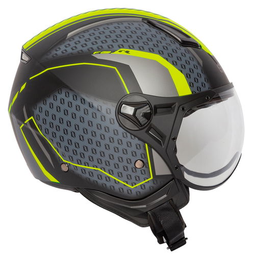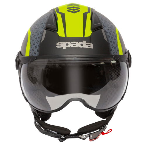 The Spada Hellion Arrow open-face motorcycle helmet offers a sleek touring style with a compact, streamlined shell. It has two shell sizes to prevent bulk and buffering, and it improves comfort with a fully removable and washable lining. The shaped anti-scratch visor provides superior vision, and the Hellion features three vents for internal airflow and excellent air circulation. It is ECE 22.05 approved and features a quick-release chin strap fastening for an adjustable yet ultra-secure closure.