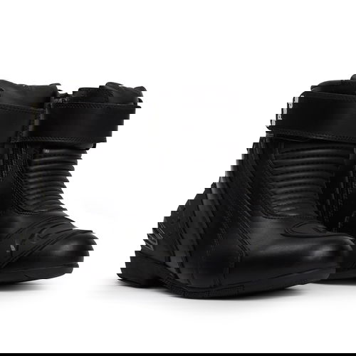 A shorter sports boot, the Spada Icon CE WP motorcycle boot offers touring comfort and weather protection with sports styling and protection. CE Certified to Level 1, the Icon WP boots offer a PU-coated leather construction with a touring sole and accordion detailing for exceptional freedom of movement. The shorter styling also gives additional freedom. Durable PU-moulded ankle sections give superior protection, reinforcement at the toes and heels, and a moulded gear change reinforcement pad. A zip closure with hook-and-loop adjustment gives a custom and secure closure.