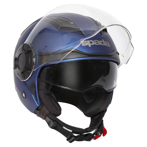 The Spada Lycan open-face helmet offers a clear, anti-scratch long visor with an internal sun visor. Two upper vents give excellent airflow, and an integrated rear spoiler provides outstanding aerodynamics. It has two shell sizes to prevent buffering and prevent extra weight. The lining is fully removable and washable to keep you fresh, and the chin strap is quick-release and adjustable for a secure closure. Available in a choice of colours and designs.