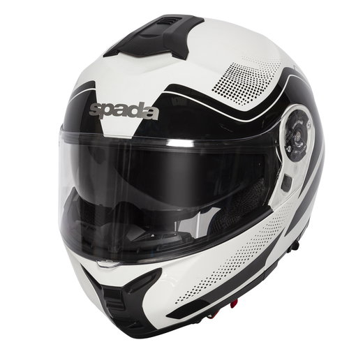 The Spada Orion Pixel helmet is a flip-front motorcycle helmet with dual P/J homologation, meaning this can be used safely in the open or closed position. It is ECE 2205 approved and comes with a quick-release, anti-scratch-treated, clear visor (Pinlock prepared) and an internal sun visor. The lining is washable and fully removable. Three resealable vents give a personalised ventilation system with an integrated rear spoiler for added aerodynamics. The Orion helmet also has a breath guard, chin curtain, and a quick-release chin strap fastener for a secure and adjustable closure.