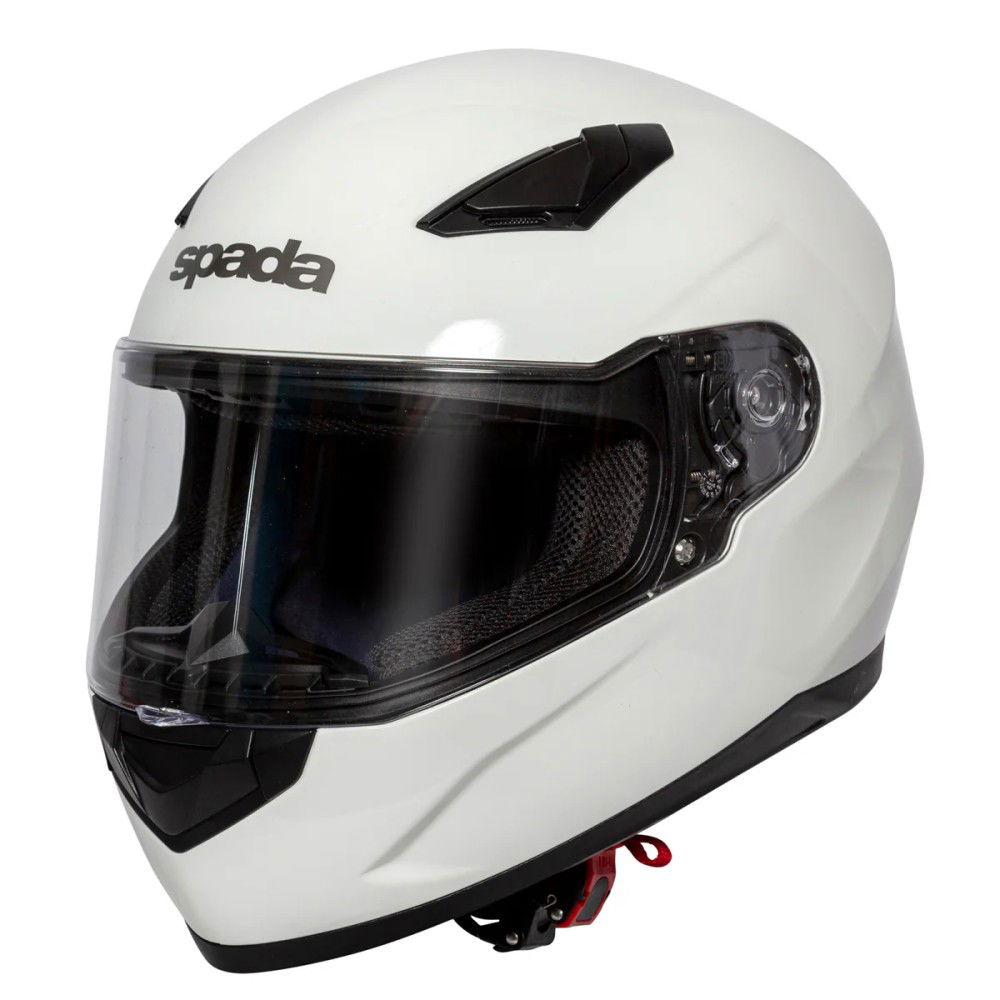 The Spada Raiden full-face motorcycle helmet is made from an impact-resistant thermoplastic shell and is ECE 2205 approved. Four vents in key areas provide optimum airflow, and an integrated rear spoiler enhances aerodynamics and air expulsion. The Raiden comes with a breath guard, chin curtain, and a fully removable, washable lining. A quick-release chin strap fastening gives a secure and adjustable closure. The clear anti-scratch treated visor is quick-release for easy changing and Pinlock prepared. Available in a choice of colours.