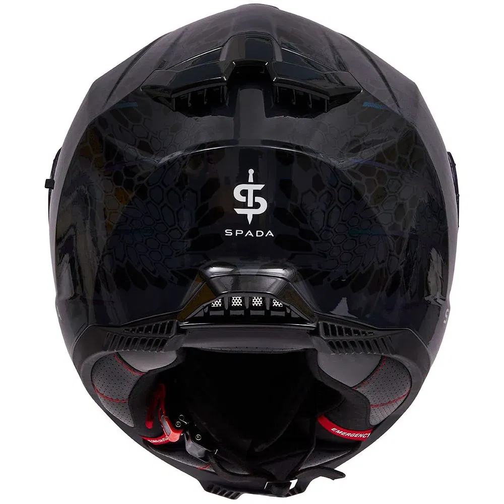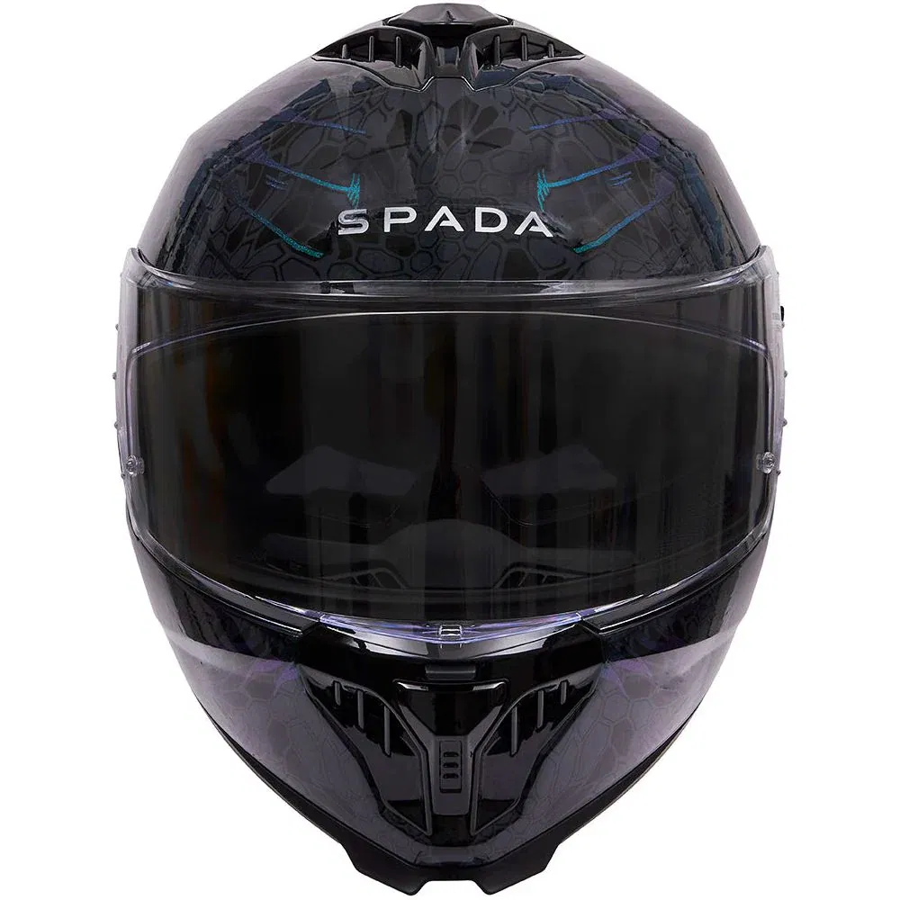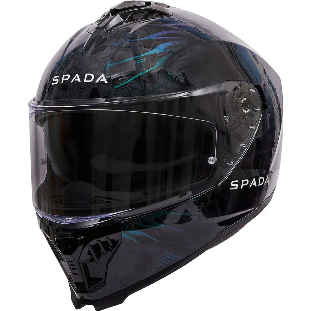 The Spada SP18 Kusanagi motorcycle helmet is a full-face helmet made from lightweight impact-resistant thermoplastic. It has a removable and washable liner and a breath deflector. The wide aperture gives a fantastic field of vision with a scratch-resistant clear UV-protected visor that is Pinlock-prepared for a clear view. The SP18 also boasts a drop-down sun visor that is easy to use with gloves and it has a visor button lock. It is ECE 22.06 certified and offers a quick-release buckle chin strap for secure and custom closure. Available in a choice of colours and designs.