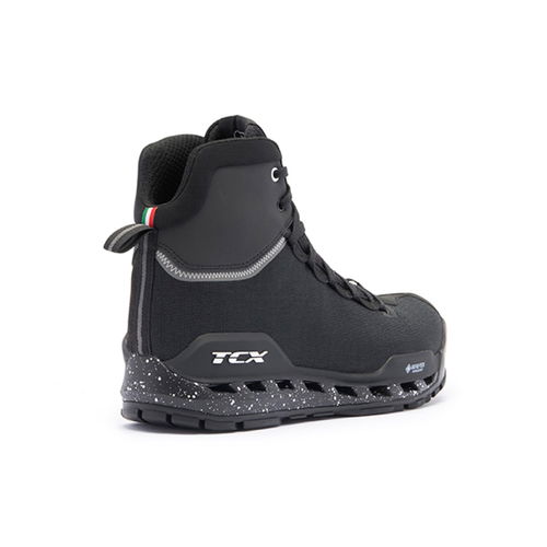 The TCX Climatrek Surround Gore-Tex boots feature Gore-Tex Surround technology designed to offer protection, breathability, waterproofing, and comfort when walking. They also come with a Gore-Tex extended comfort membrane, making them fully waterproof and breathable. CE-certified, they are made from a high-tenacity fabric and synthetic material construction that is ultralightweight and durable. The technical fabric, coupled with the waterproof and highly breathable Gore-Tex Extended Comfort membrane, is combined with the special Gore-Tex Surround construction designed to channel heat and moisture outwards also through the sole, equipped with a ventilation grille to allow perfect insulation from atmospheric agents and the same time promote continuous heat exchange between the inside and outdoors, ideal for hotter climates and three-season use. The Groundtrax sole features a special tread pattern and compound designed to ensure stability and grip on the foot pegs and controls, combined with maximum traction and great comfort when walking on all terrain. The OrthoLite foam insole allows air to circulate, wicking away moisture and keeping the foot dry at all times. The material can compress and easily return to its initial state so that cushioning, fit and comfort are unchanged over time. Also available in grey.