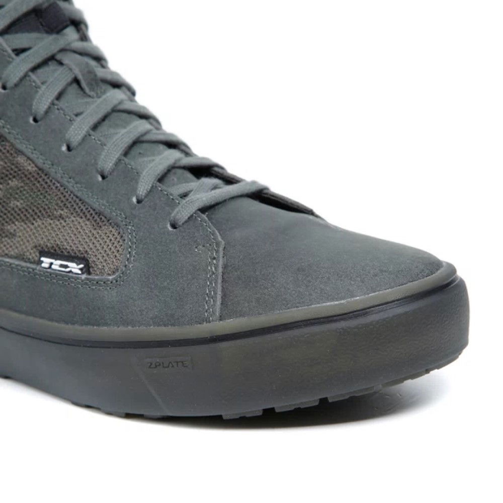 Motorcycle boots that can easily transition to the street - the TCX Street 3 motorcycle shoes are CE-certified and breathable and feature protective elements without impacting the look. D30 reinforcement at the ankles, toes, and heel provides outstanding protection along with a special Zplate insert in moulded polymer for transverse rigidity and flexibility when necessary due to the Z shape. It allows for excellent movement for walking and riding and is versatile for both. The wear-resistant Groundtrax sole features a tessellated tread that guarantees maximum grip. A breathable mesh fabric construction allows for air circulation and the OrthoLite insole gives long-lasting and highly breathable cushioning making the Street 3 Air ultra-comfortable. The lace closure gives a custom and secure closure.