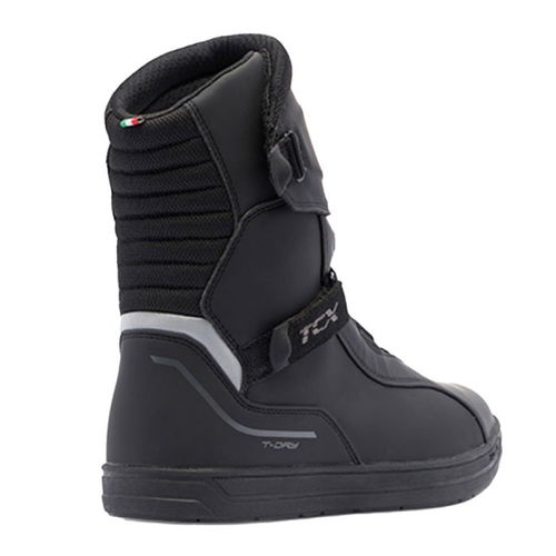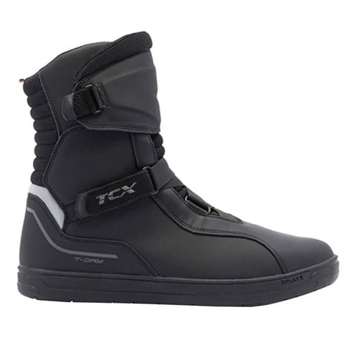 The CE Certified TCX Tourstep WP motorcycle boots feature a T-Dry waterproof membrane with an ultra-durable but lightweight Microfibre construction. A Groundtrax rubber outsole gives good comfort when walking but also for riding. The Tourstep WP, as its name suggests, is designed for touring with maximum comfort and protection. It features a midsole with a ZPlate shank for optimised flexibility and transverse rigidity, as well as reinforcements on the shin, malleolus, toes, and heels. Side closure with buckle and Velcro gives a secure closure, and a rubber gear change reinforcement pad provides added durability. An Ortholite footbed with long-term cushioning and high levels of breathability gives maximum comfort.
