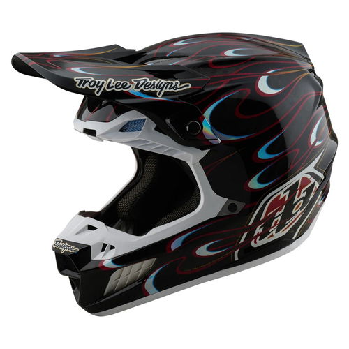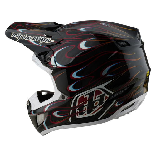 The Troy Lee Designs SE5 Carbon motocross helmet features a combination of Carbon and Dual Density EPS for superior protection and ultra-lightweight wear. Troy Lee Designs' In-moulded MIPS Integra Rotational Impact Brain Protection System gives superior protection. The SE5 Carbon also offers lightweight Titanium D-rings and alloy hardware. It also features an EPP-lined chin bar with the Collarbone Suspension System. It comes in three shell sizes to provide a more accurate fit for a variety of head sizes, resulting in improved aerodynamics. The quick-release XT2 3D cheek pads and Ionic XT2 washable liner create an optimised fit with advanced anti-microbial properties. Smart Shear plastic visor screws and brass inserts provide easy impact break-away, while a chinbar-mounted gill-set forced air intake system enhances air circulation for maximum comfort. Available in a choice of colours.