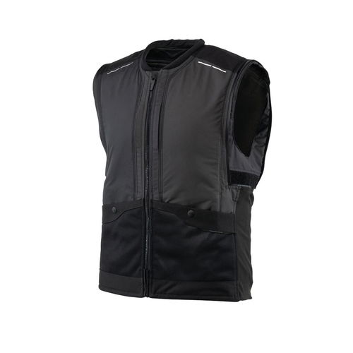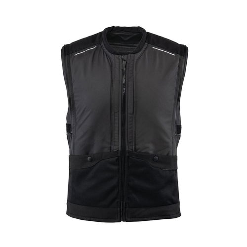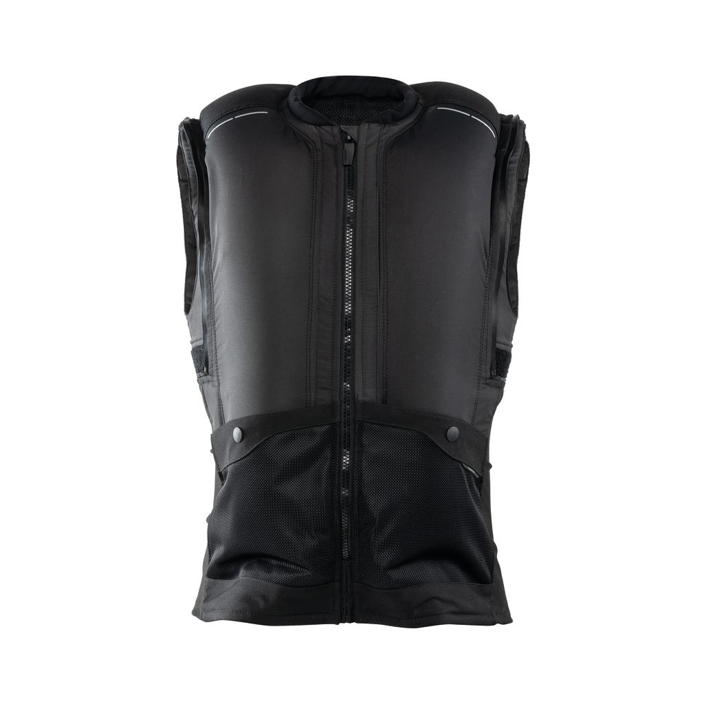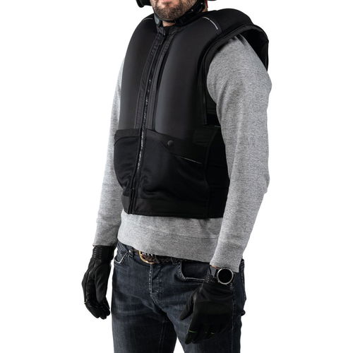 The Tucano Urbano Airscud Airbag Vest features an integrated In&motion AIRBAG system to provide riders with protection against abrasion and impact, without limiting riding ability. It can be worn as an under-jacket or as a stand-alone garment over your outfit, thanks to the abrasion-resistant and water-resistant construction. The patented system gives versatility as arms can be added (sold seperately). It can also be worn under a backpack (max. weight 8 kg). Made from ultra-durable, high tenacity three-fabric Oxford polyester outer, with Taslan polyamide on the chest and back, and 500D Oxford polyamide on the shoulders, for added resistance. Stretch polyamide on the hips ensures perfect wearability in any configuration. 3D mesh on the chest offers outstanding ventilation, and a padded neoprene collar gives comfort. It also has two front pockets. The length of the vest: 63 cm (size 50 IT-L) and weight: 1950 g (size 50 IT-L). It has rear zips for access to the In&box, the operating system of In&motion AIRBAG, with a transparent PVC window to display the system status. The integrated back protector is CE EN 1621-2 approved - Level 1 CPS (Comfort Protection System), and is designed to accommodate the airbag inflator cartridge. It also offers reflective detailing for maximising visibility. Please note: before purchasing and using the AIRSCUD, please read the instructions and warnings in the user manual carefully. Order your In&Box, choose your airbag configuration, and register your garment online by visiting https://shop.inemotion.com/en-gb/airbag-moto/pricing.